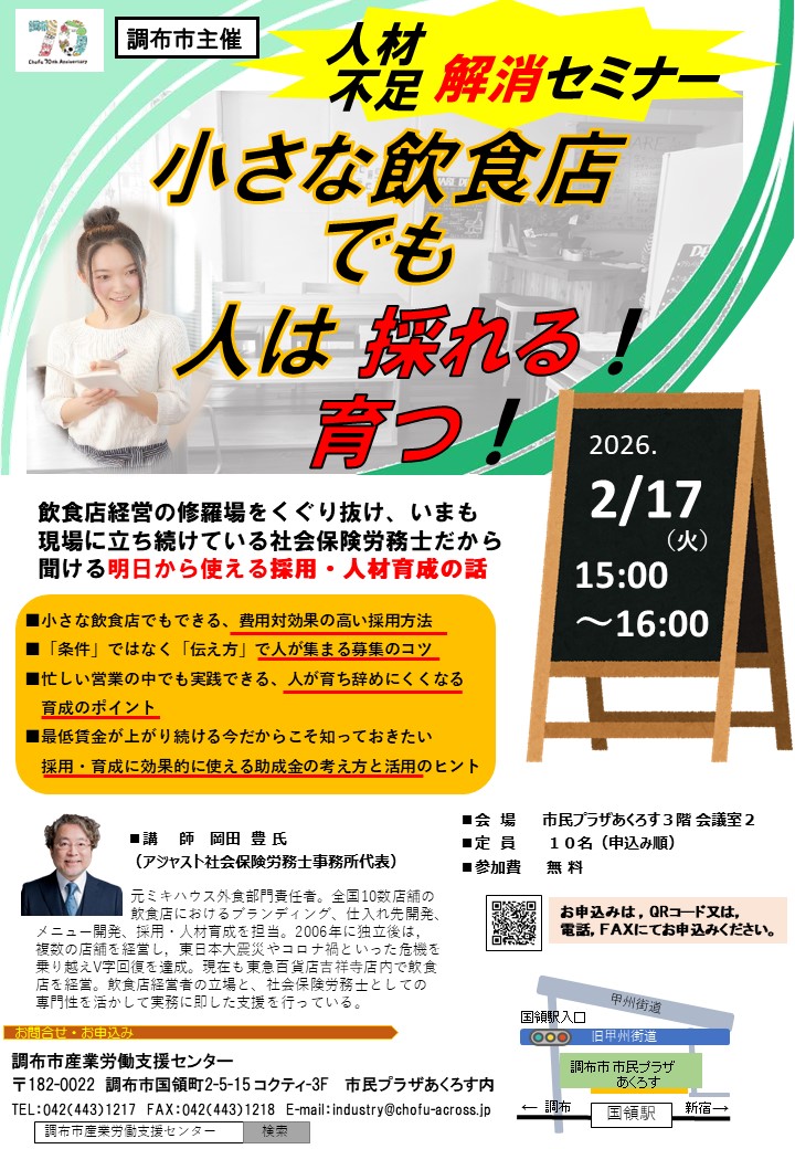 【セミナー】人材不足解消セミナー「小さな飲食店でも人は取れる!育つ!」