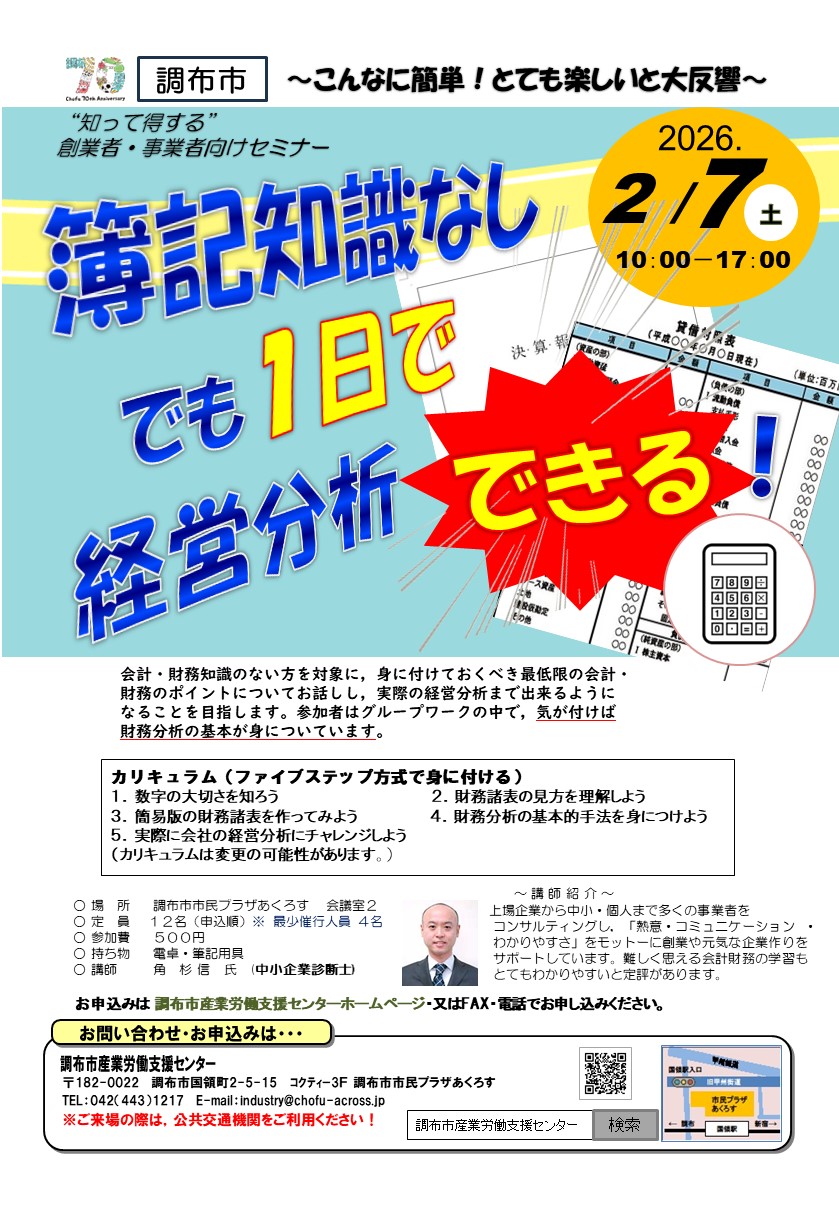 【セミナー】簿記知識なしでも1日で経営分析できるセミナー